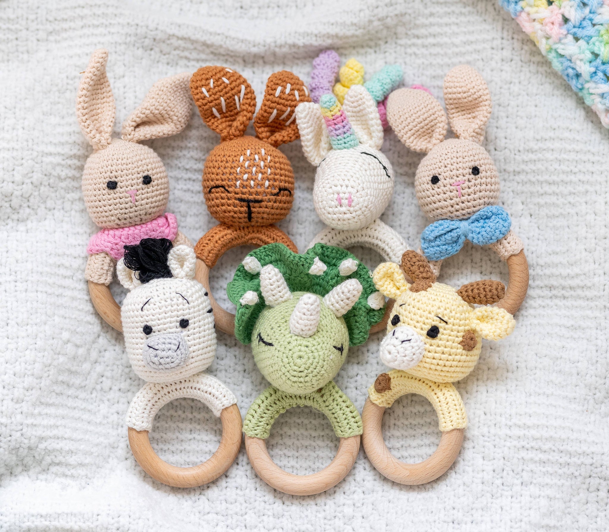 These high-quality hand-crocheted baby rattles are made from 100% Cotton Yarn and Natural Beechwood. Each rattle is beautifully crafted from all-natural, baby-safe and eco-friendly materials.